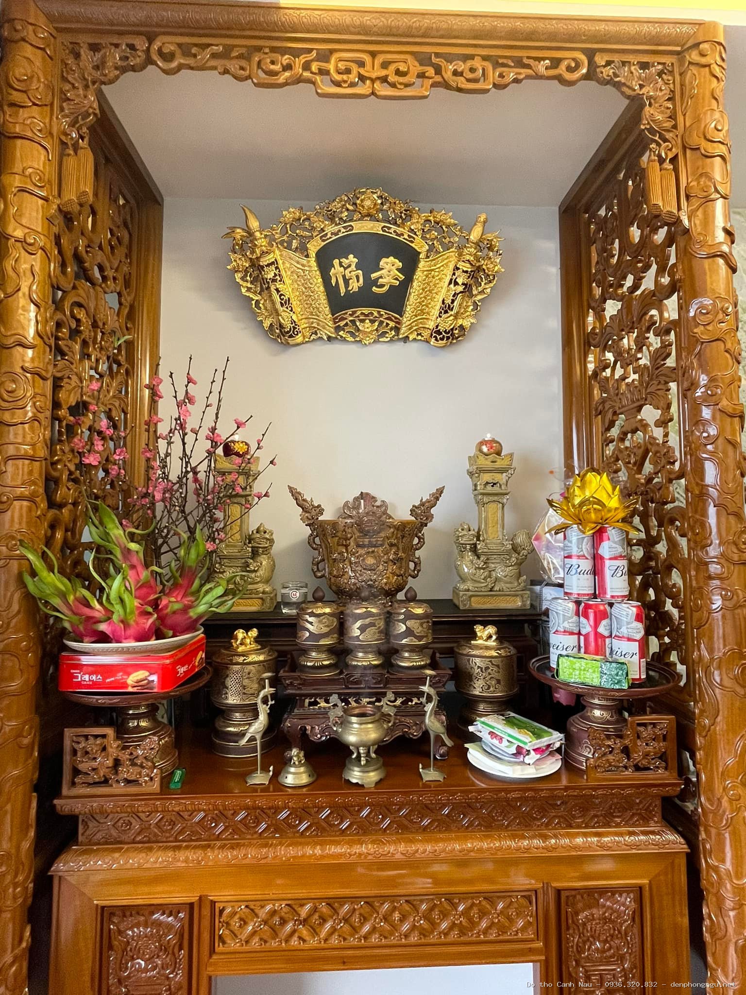 Công trình: Bàn thờ gia tiên gỗ gõ đỏ hoa sen GD1 tại Hai Bà Trưng