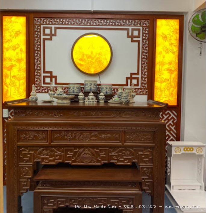 Bộ Bàn Thờ 1m97 Và Bàn Cúng Cơm 1m27 Gỗ Hương Đá tại Hoàng Mai