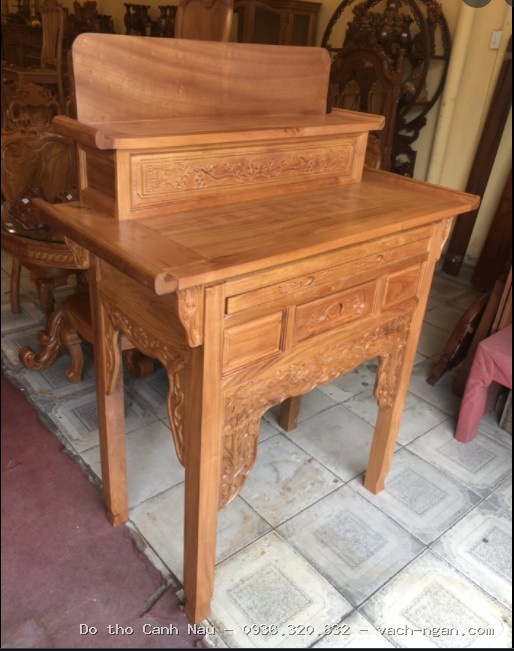 Bàn thờ đứng gỗ hương đá màu cánh gián mẫu đục sen mặt tiền tại Nam Từ Liêm