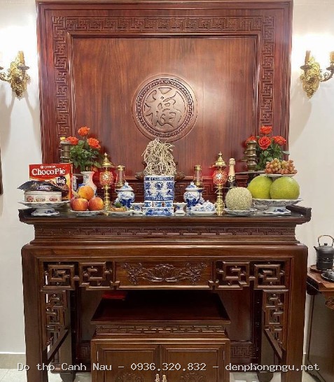 Bàn thờ đứng gỗ hương đá màu óc chó mẫu Thiên Quý tại Ba Đình