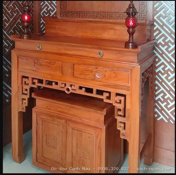 Bàn thờ đứng gỗ hương đá màu cánh gián mẫu Thọ An tại Cầu Giấy