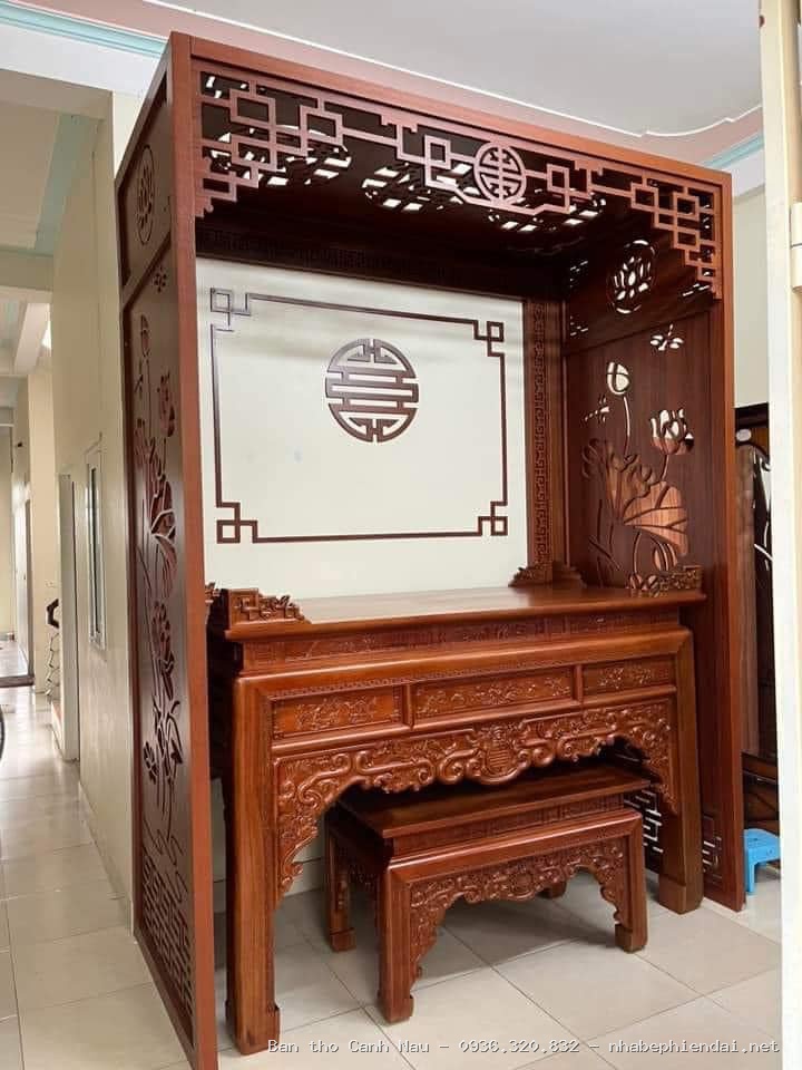 Bàn thờ đứng gỗ sồi màu cánh gián mẫu Vạn Phúc tại Ba Đình