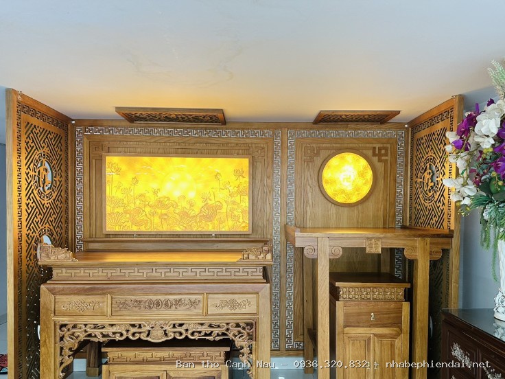 Công trình: Bàn thờ đứng gỗ gụ màu óc chó mẫu triện vạn tại Hoàng Mai