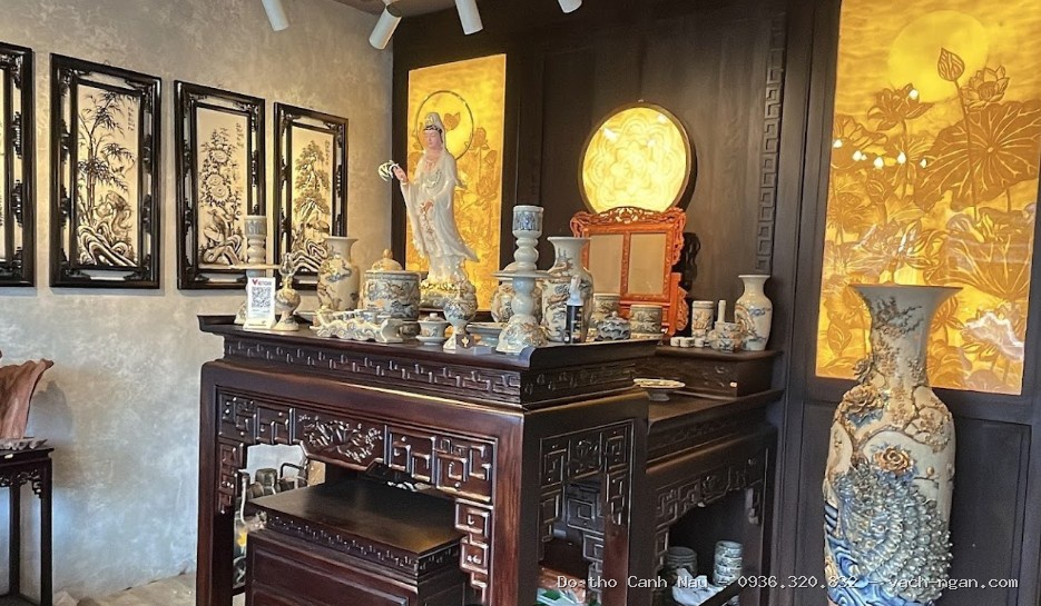 * Lưu ý: Mẫu Bàn thờ đứng gỗ gụ màu óc chó mẫu triện vạn tại Hoàng Mai được Nghệ nhân Sơn Vũ tùy chỉnh kích thước riêng biệt để phù hợp với diện tích thực tế tại Hoàng Mai. Quý khách vui lòng liên hệ để nhận tư vấn theo mặt bằng căn hộ.