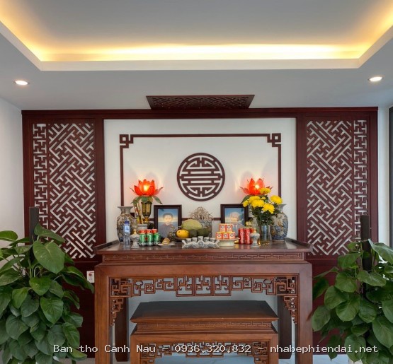 VÁCH TƯỜNG PHÒNG THỜ THIẾT KẾ MÀU TRẦM ẤM ĐẸP tại Hoàng Mai
