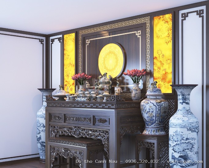 Phòng thờ hiện đại ốp CNC chữ Phúc Lộc Thọ tại Đống Đa