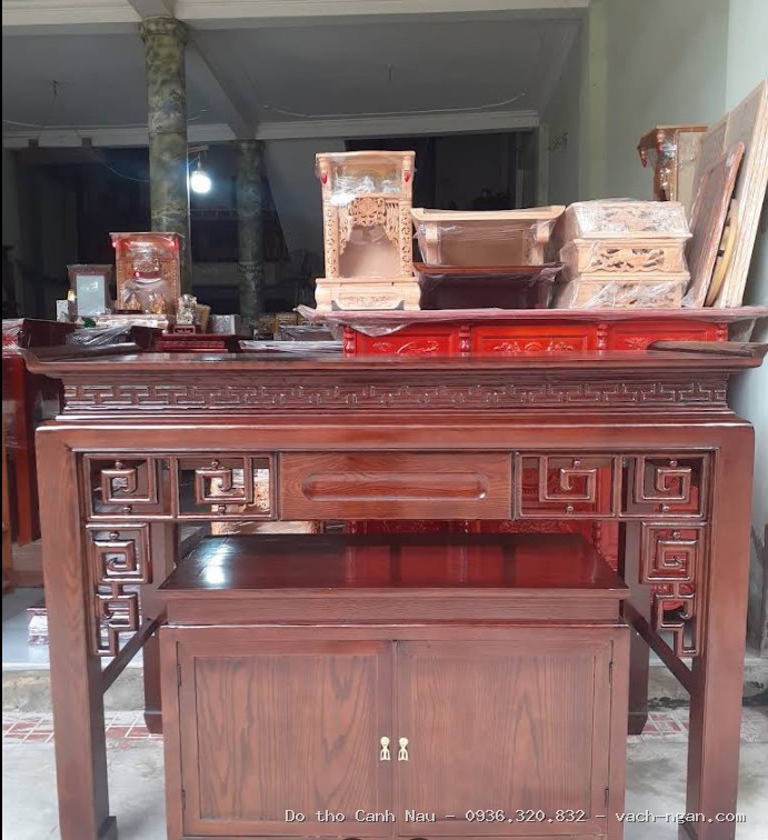 Bàn thờ đứng gỗ sồi màu óc chó mẫu sen nền