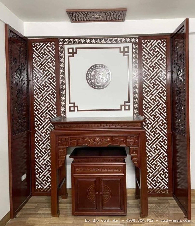Mẫu phòng thờ gia tiên gỗ sồi hiện đại tại Cầu Giấy